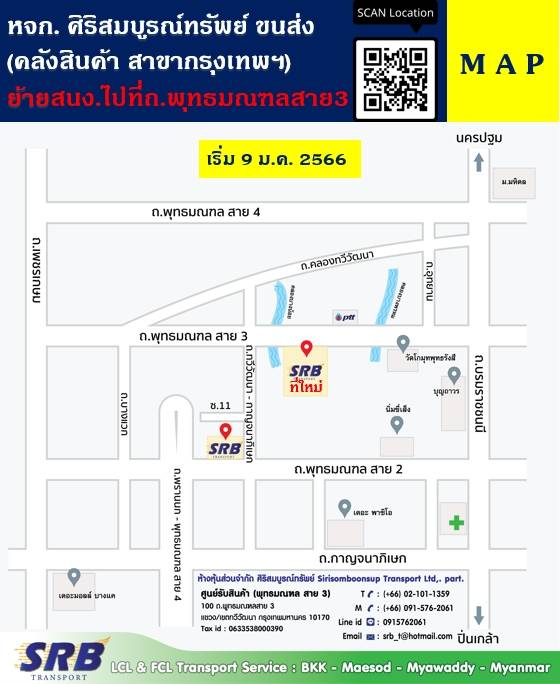 ปลายทาง : คลังสินค้า สาขาแม่สอด SRB Maesod Warehouse